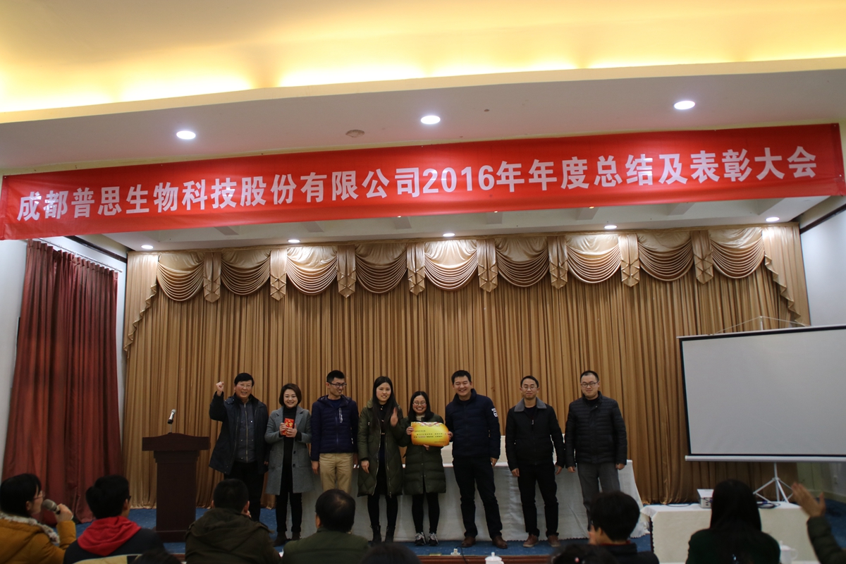 舊歲已展千重錦,新年再進(jìn)百尺竿!2016年是普思生物在“新三板”掛牌上市的第二年,這一年普思生物實現(xiàn)了快速的發(fā)展,收獲了較為滿意的成績,借著這股勢頭相信普思生物將會在丁酉雞年取得更輝煌的成就!2017年1月6日,公司在武侯區(qū)御翠草堂迎來了2016年年度工作總結(jié)暨表彰大會。會上公司領(lǐng)導(dǎo)和各部門負(fù)責(zé)人發(fā)表了熱情洋溢的講話,總結(jié)過去的2016年工作,并對2017年的工作作出部署和安排。會上還對2016年度優(yōu)秀員工、優(yōu)秀項目負(fù)責(zé)人、優(yōu)秀管理人員、優(yōu)秀團(tuán)隊、十年奉獻(xiàn)獎、季度“星級員工”以及年度優(yōu)秀軟文進(jìn)行了表彰,并頒發(fā)了獎勵。晚上公司全體員工一起共享豐盛的晚宴,全體員工度過了一個溫馨、愉快的夜晚。