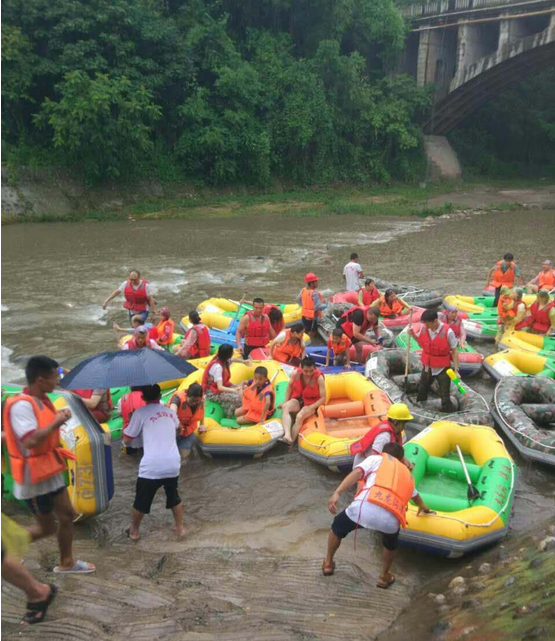 大家冒雨體驗漂流