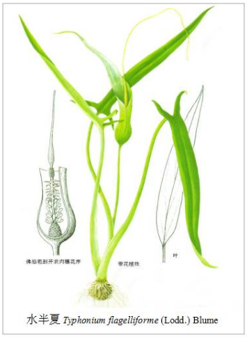 水半夏:源于天南星科植物鞭檐犁頭尖Typhonium flagelliforme(Lodd.)Blume的干燥塊莖。