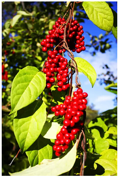 自此,苦娃就在深山老林里開荒種地,過(guò)上了舒心的日子。每年的這一天他都不忘到這里祭拜這些果樹。后來(lái),這些爬蔓的樹所結(jié)之果的籽落地發(fā)芽長(zhǎng)出新藤,新藤再結(jié)新果,數(shù)年后,五味子遍布長(zhǎng)白山腳下。
