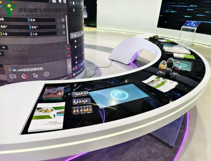 該展廳依托武侯區(qū)科技成果轉(zhuǎn)化服務(wù)中心"全鏈條轉(zhuǎn)化平臺"優(yōu)勢,系統(tǒng)性呈現(xiàn)"科創(chuàng)引擎·武侯鑄力、科創(chuàng)文脈·武侯蓄力、科創(chuàng)生態(tài)·武侯合力、科創(chuàng)轉(zhuǎn)化·武侯發(fā)力、智匯云圖·武侯領(lǐng)航"五大主題板塊。在該展廳中成都普思生物展示了在醫(yī)藥研發(fā)領(lǐng)域的技術(shù)突破與產(chǎn)品案例,并通過實體樣品、交互系統(tǒng)等形式,向觀展的政府部門、醫(yī)藥企業(yè)和科研高校直觀呈現(xiàn)技術(shù)轉(zhuǎn)化成果。