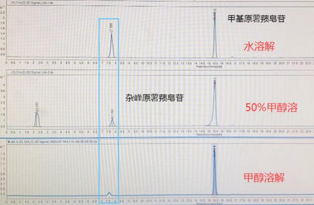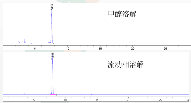 原因:部分對照品在當前溶劑下溶解性較差,在溶解時對照品或其雜質(zhì)溶解不充分,從而導致純度異常。