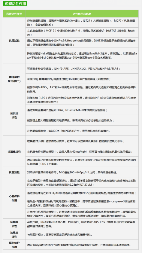 葒草苷(Orientin)是一種類黃酮苷類物質(zhì),具有抗癌、抗氧化、神經(jīng)保護(hù)、心血管保護(hù)、抗過敏、抗炎等多種生物學(xué)特性。它存在于多種植物中,如路依保斯茶、圣羅勒、西番蓮屬、金蓮花屬、剛竹屬。葒草苷具有良好的抗癌、神經(jīng)保護(hù)、抗炎和抗氧化活性。希望這篇作用機(jī)制研究綜述能夠幫助藥物研究人員和制藥企業(yè)找到一種有效的天然藥物,用于治療具有潛在作用機(jī)制的不同疾病[1]。