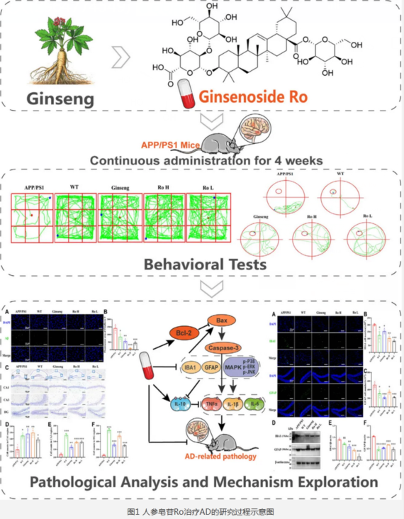 人參皂苷Ro通過減少Aβ沉積、改善神經(jīng)元凋亡和神經(jīng)炎癥,以及調(diào)控MAPK通路來實(shí)現(xiàn)改善空間探索能力、記憶認(rèn)知功能。具有開發(fā)成為AD治療藥物的潛力。[5][6]