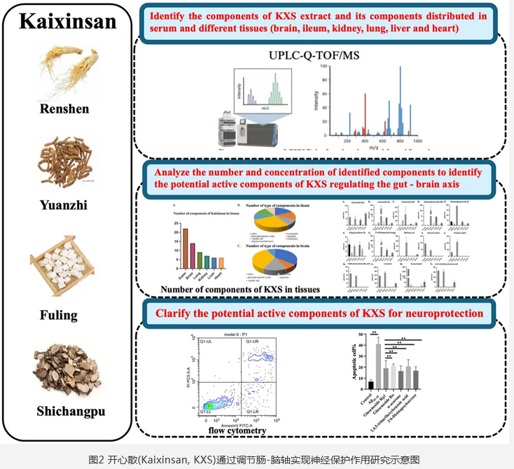 人參皂苷Ro作為開心散(Kaixinsan, KXS)的重要活性成分,通過調(diào)節(jié)腸-腦軸實(shí)現(xiàn)神經(jīng)保護(hù)作用。為KXS在防治阿爾茨海默病、抑郁癥等神經(jīng)退行性疾病中的應(yīng)用提供了理論依據(jù)。[7]