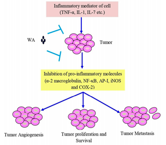 圖2 醉茄素A對(duì)腫瘤抑制的作用機(jī)制及信號(hào)通路[2]