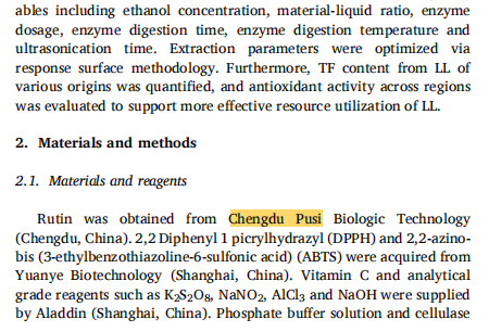 Chenlu Liu.et al.Ultrasound-assisted enzyme extraction of total flavonoids from lotus leaf (Nelumbo nucifera Gaertn.) and its antioxidant activity[J].LWT-Food Science and Technology,2025(215):117224