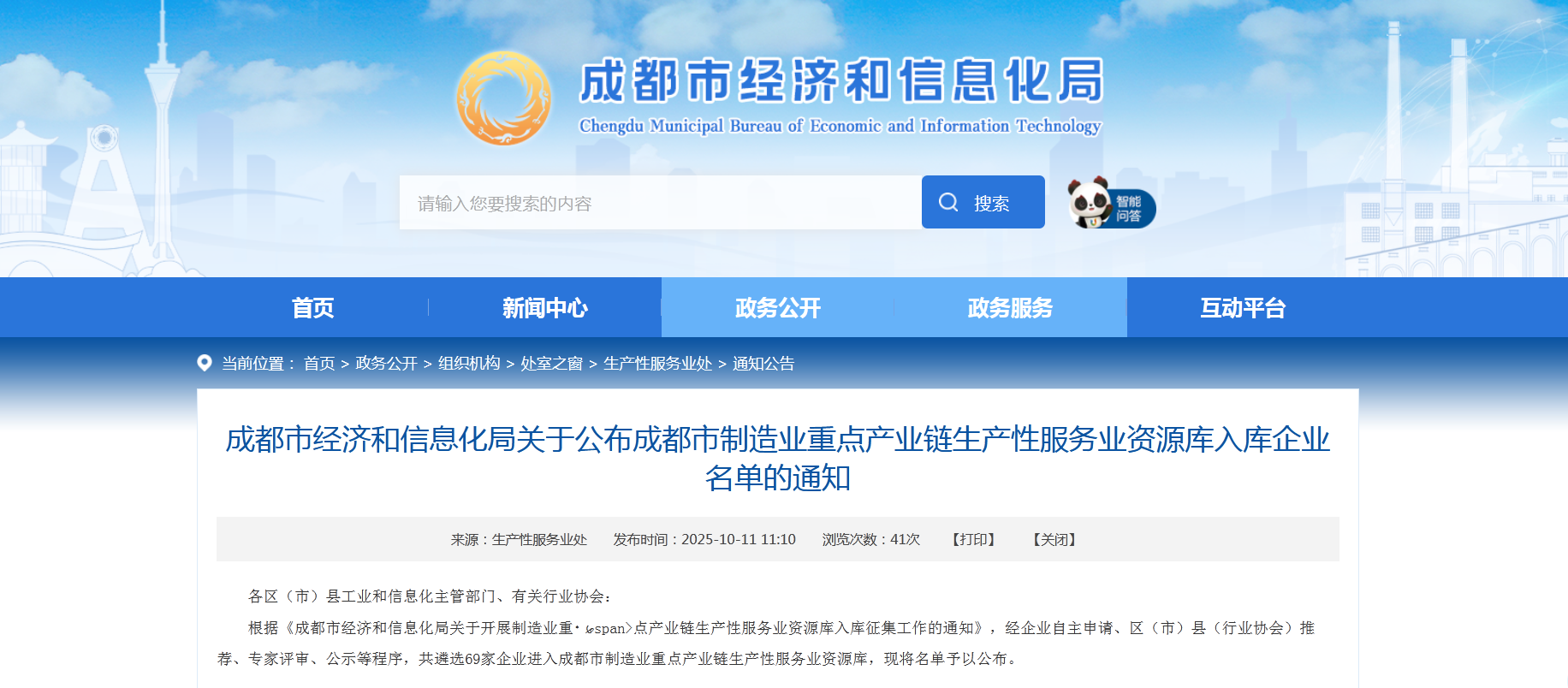 今日,成都市經(jīng)濟(jì)和信息化局公布“成都市制造業(yè)重點(diǎn)產(chǎn)業(yè)鏈生產(chǎn)性服務(wù)業(yè)資源庫(kù)擬入庫(kù)名單”。