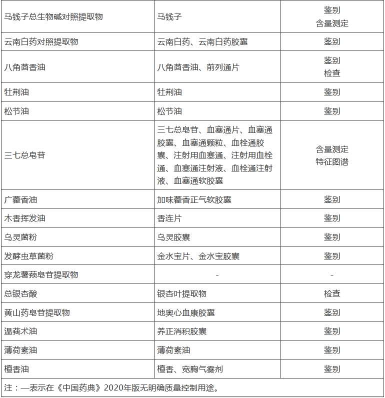 隨著近年來研究的發(fā)展和增多以及中藥配方顆粒的廣泛使用,現(xiàn)在有越來越多的中藥品種開始使用對照提取物,目前《中國藥典》2020年版已經(jīng)收載使用28種對照提取物,部分省市的中藥配方顆粒標(biāo)準(zhǔn)也有不少品種開始使用相應(yīng)的對照提取物,使中藥材(飲片)及其復(fù)方的質(zhì)量控制更符合中醫(yī)藥理論,也完善了其質(zhì)量控制評價(jià)體系。