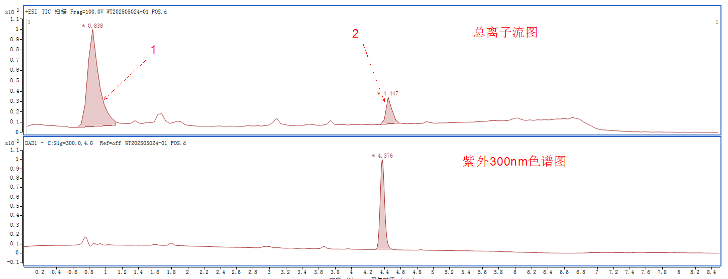 即使是單體化合物,適宜的色譜方法也是精準(zhǔn)鑒定的重要起點(diǎn)。對(duì)于未知的“單體”,往往只是在紫外色譜單一波長下顯示“單一峰”,實(shí)際可能并不單一,而還含有僅在總離子流圖、其他波長下才能顯現(xiàn)的雜質(zhì)峰。如果色譜方法不當(dāng)(例如不過色譜柱、不串聯(lián)紫外檢測器或使用快速通用方法),可能導(dǎo)致誤把“雜質(zhì)”當(dāng)目標(biāo),出現(xiàn)錯(cuò)誤鑒定結(jié)果。