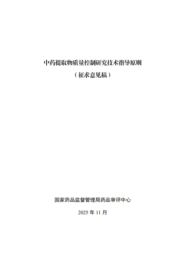 新指導(dǎo)原則征求意見|CDE最新發(fā)布《中藥提取物質(zhì)量控制研究技術(shù)指導(dǎo)原則(征求意見稿)》