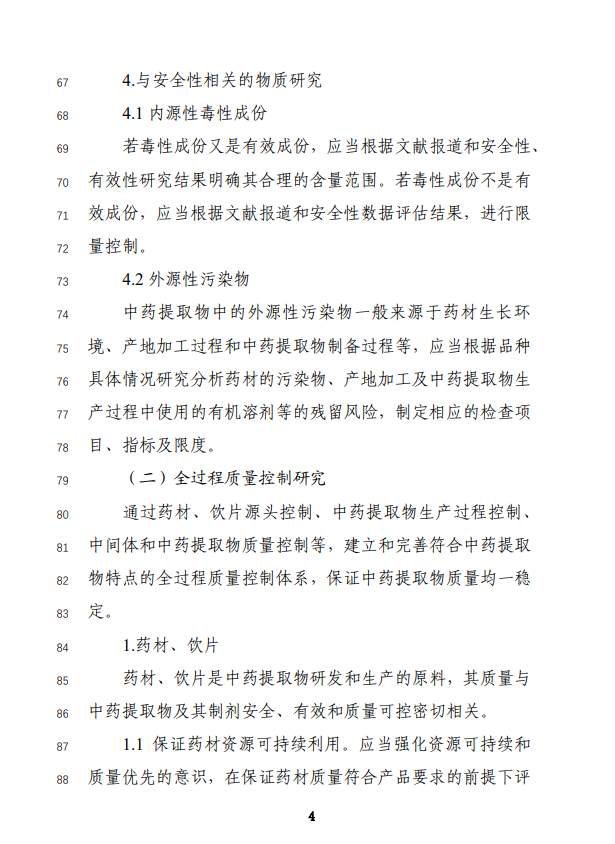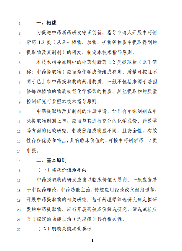 為促進中藥新藥研發(fā)守正創(chuàng)新,指導(dǎo)申請人開展中藥創(chuàng)新藥1.2類(從單一植物、動物、礦物等物質(zhì)中提取得到的提取物及其制劑)的研發(fā),藥品審評中心組織起草了《中藥提取物質(zhì)量控制研究技術(shù)指導(dǎo)原則(征求意見稿)》。