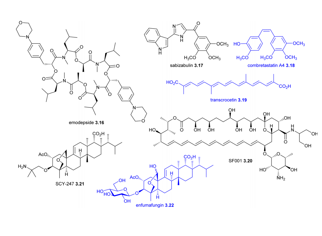 ·感染性疾病:抗菌藥結(jié)構(gòu)與機(jī)制多樣,那非霉素已在印度獲批,培西加南提交中國新藥申請,新型作用機(jī)制化合物(如 Zaloganan、EBC-1013)受關(guān)注;抗寄生蟲、抗病毒、抗真菌藥物均有候選化合物推進(jìn),Sabizabulin 在 COVID-19 相關(guān) ARDS 試驗中死亡率降低 24.9%。