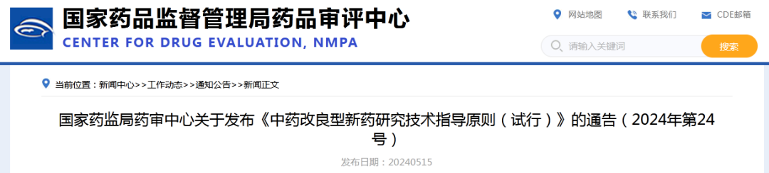 國家藥監(jiān)局藥審中心關(guān)于發(fā)布《中藥改良型新藥研究技術(shù)指導(dǎo)原則(試行)》的通告