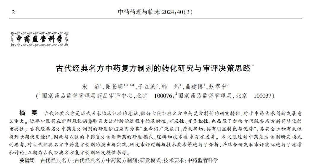 古代經(jīng)典名方中藥復(fù)方制劑的轉(zhuǎn)化研究與審評決策思路